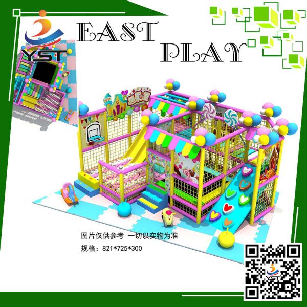 This indoor playset size is 821*725*300cm , jungle hunter as bridge and trampoline, small area with muti-fun.